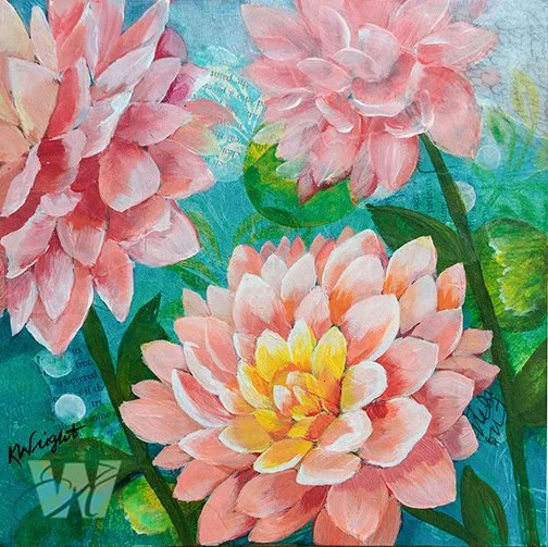 Bloom in Grace & Kindness, 8x8” acrylic on collage w/molded edges... $175